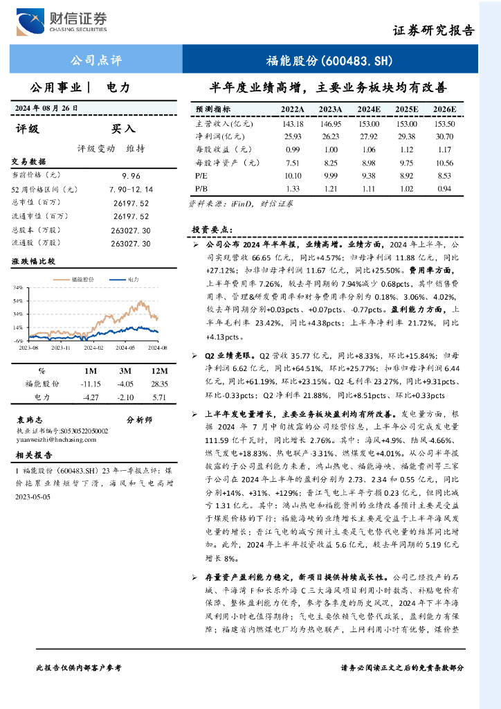 财信证券:福能股份(600483)-半年度业绩高增,主要业务板块均有改善.pdf