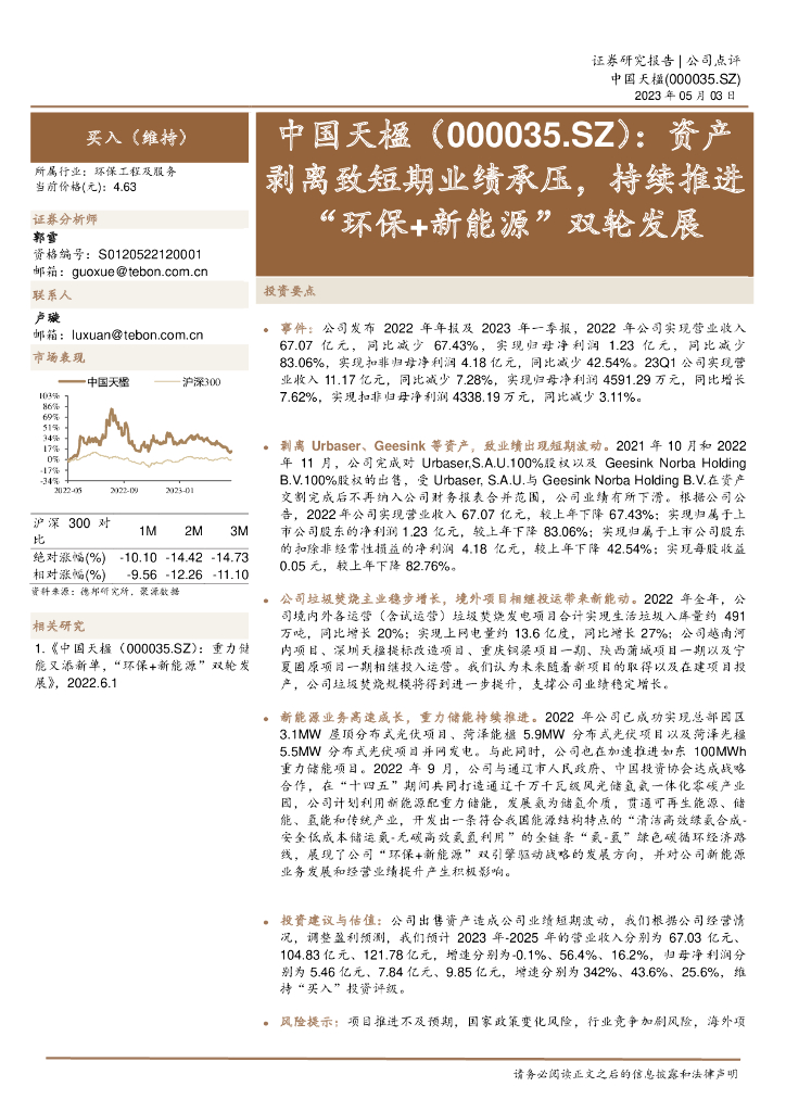 德邦证券:中国天楹(000035)-资产剥离致短期业绩承压,持续推进“环保+新能源”双轮发展.pdf