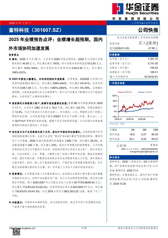 华金证券:富特科技(301607)-2025年业绩预告点评:业绩增长超预期,国内外市场协同加速发展.pdf