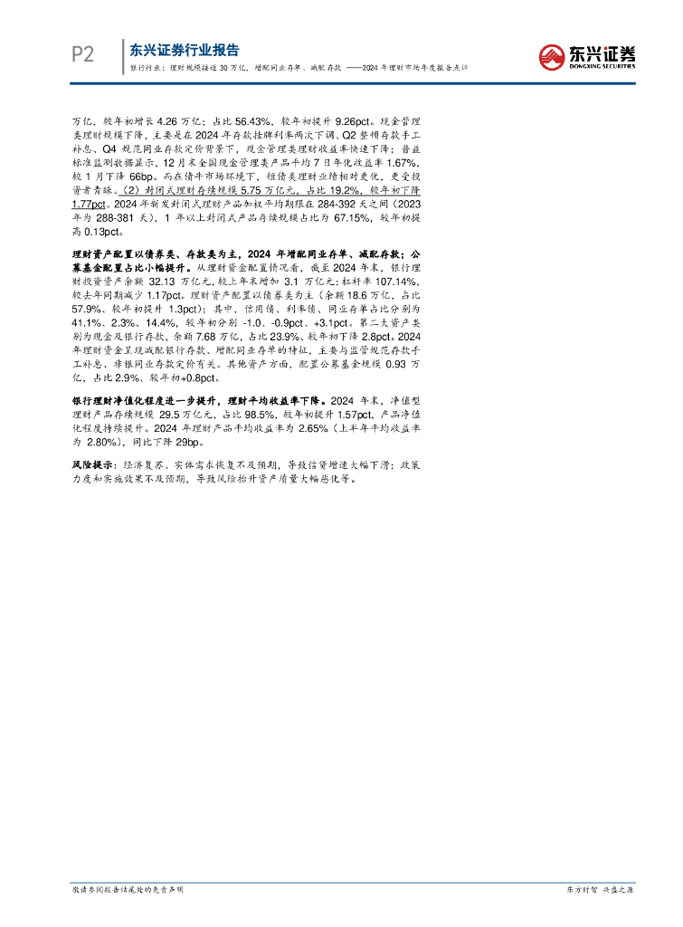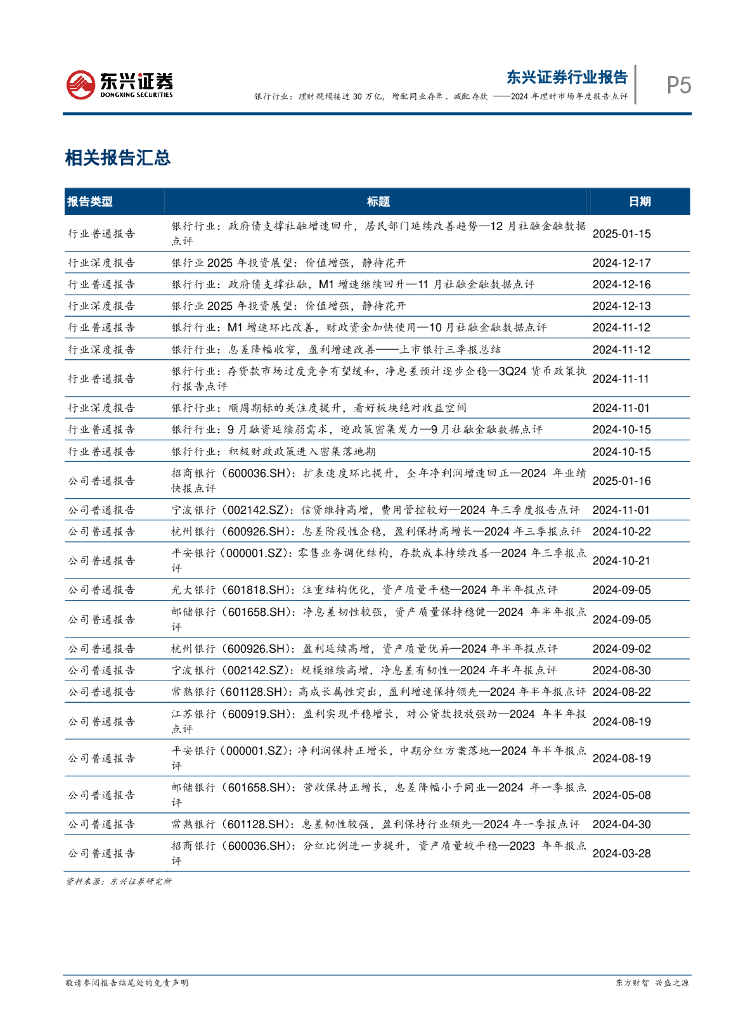东兴证券:2024年理财市场年度报告点评:银行行业:理财规模接近30万亿,增配同业存单、减配存款.pdf