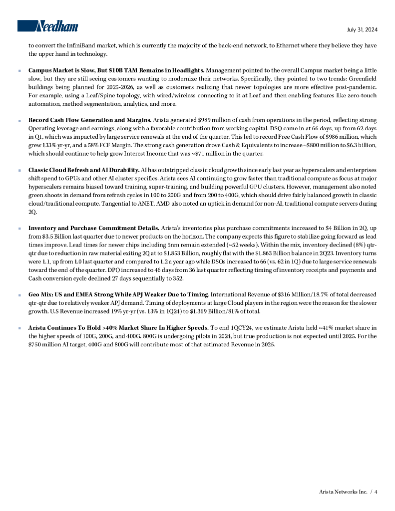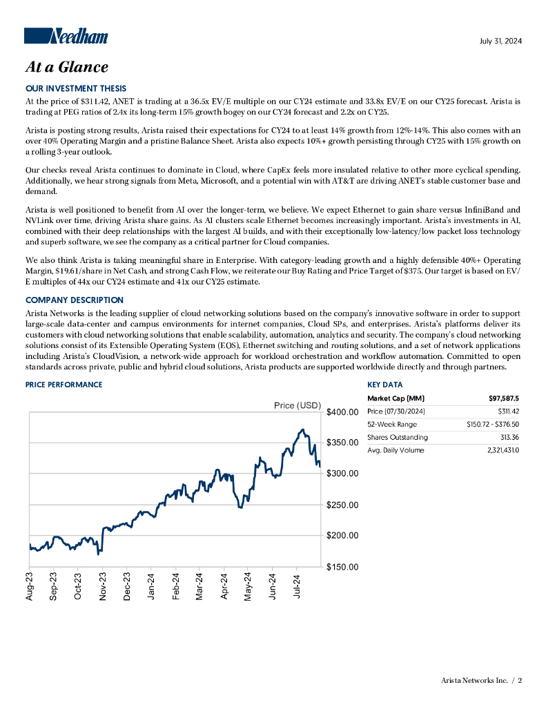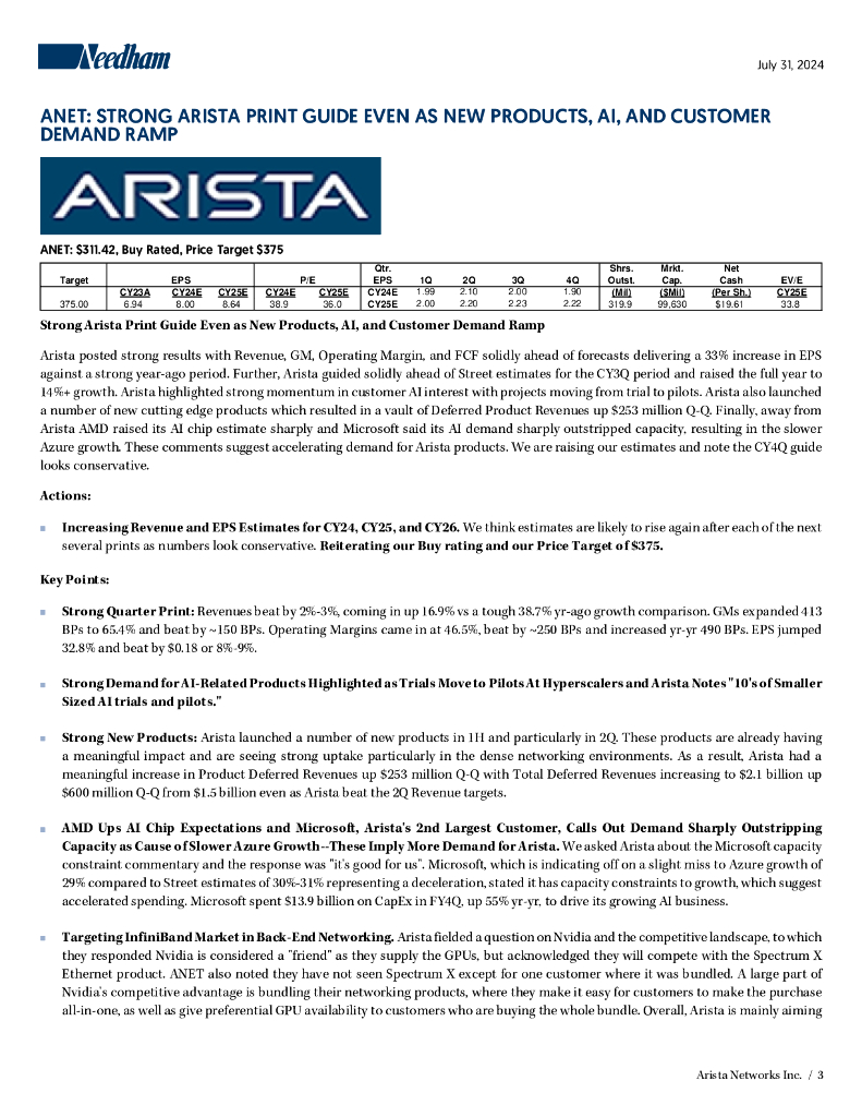 Needham:2024年光网络技术行业-Arista Networks(ANET)公司研究:在新产品、人工智能和客户需求增长下,Arista获显著利润报告(英文版).pdf