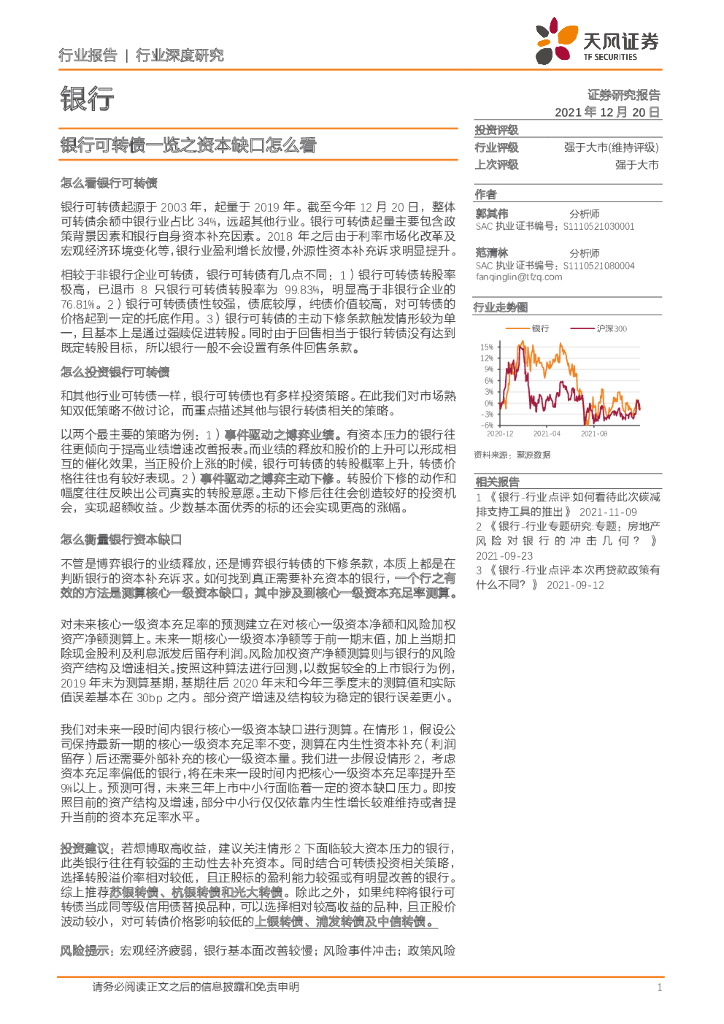 天风证券:银行行业深度研究:银行可转债一览之资本缺口怎么看.pdf