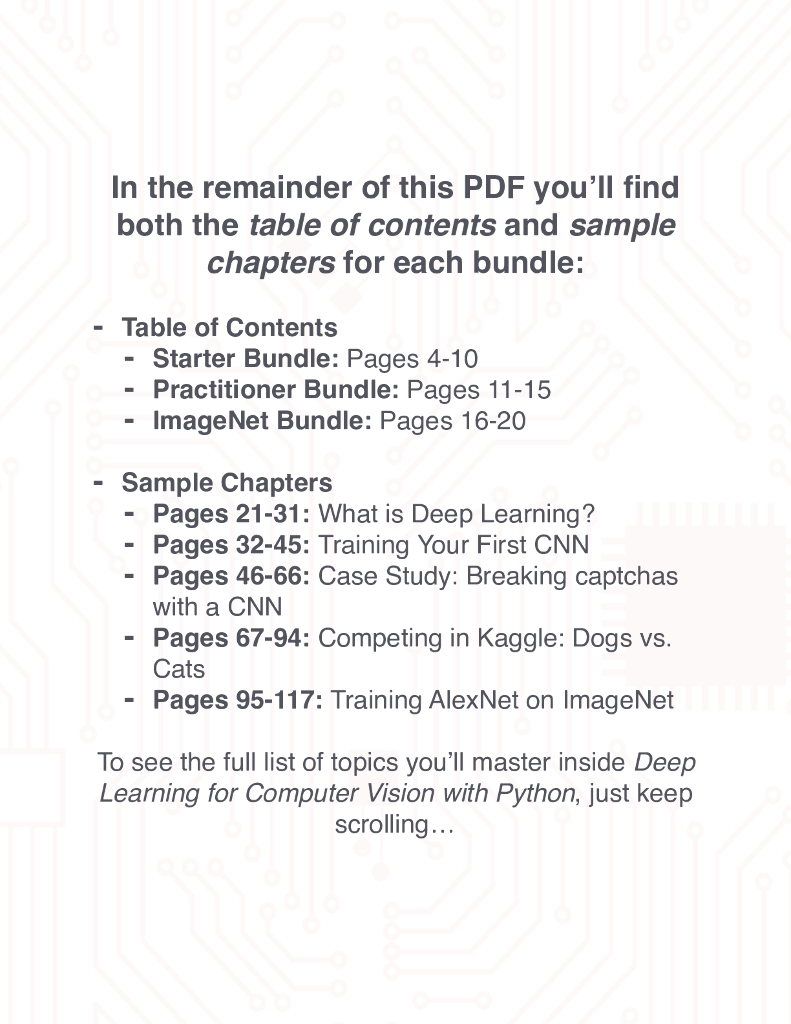 Thank you for downloading the table of contents + sample chapters to Deep Learning for Computer Vision with Python!.pdf