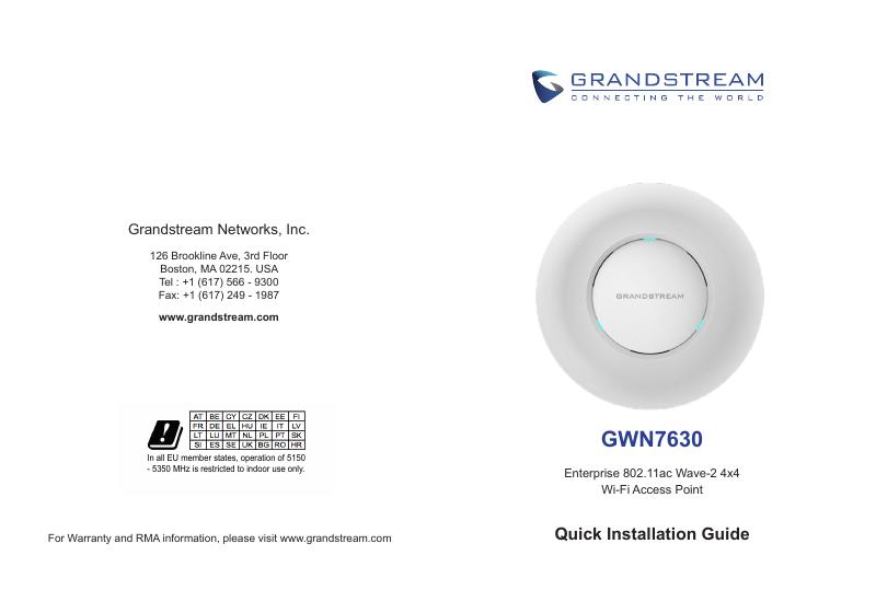 GWN7630企业级802.11ac Wave-2 4x4 Wi-Fi接入点快速安装指南.pdf