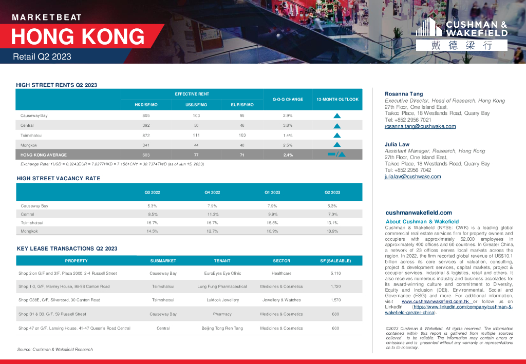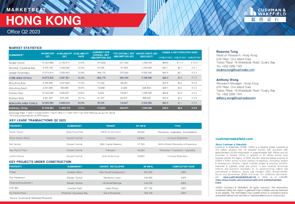 戴德梁行:2023第二季度香港写字楼与零售市场报告(英文版).pdf