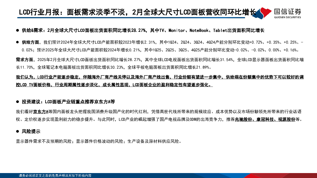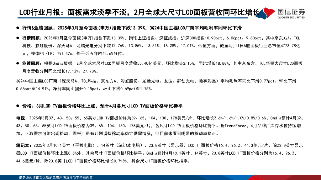 国信证券:LCD行业月报:面板需求淡季不淡,2月全球大尺寸LCD面板营收同环比增长.pdf