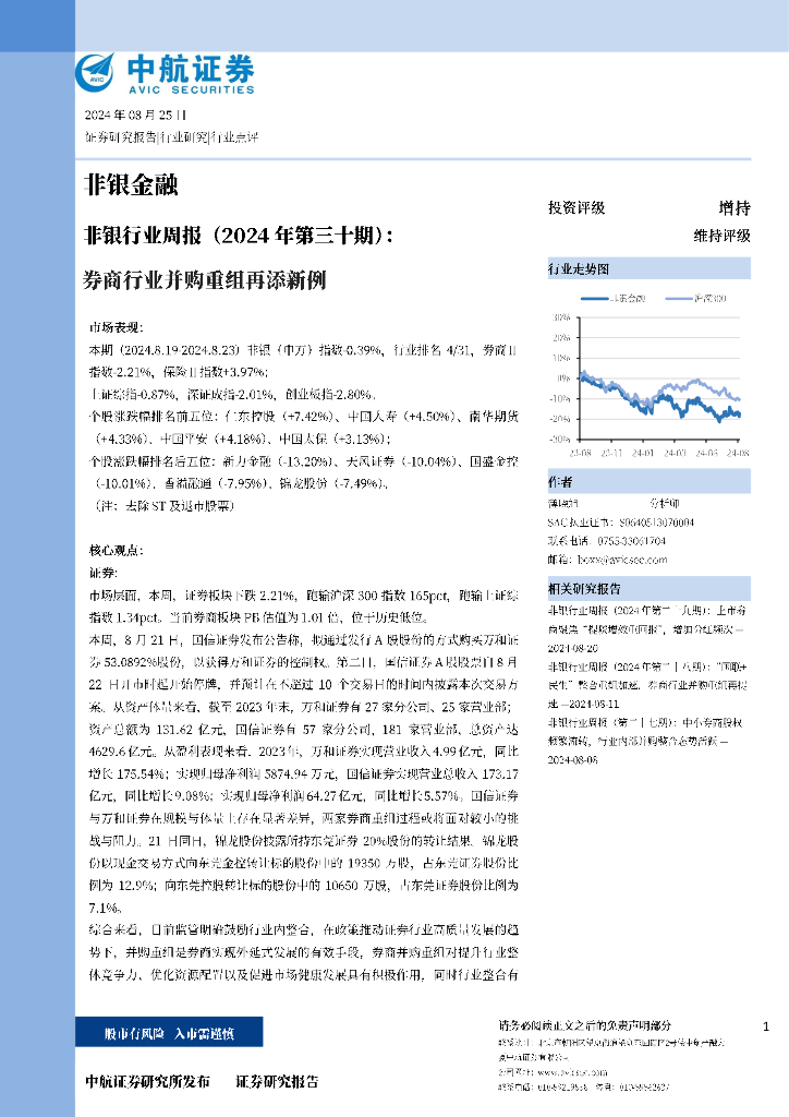 中航证券:非银行业周报(2024年第三十期):券商行业并购重组再添新例.pdf