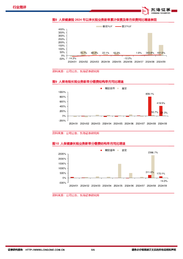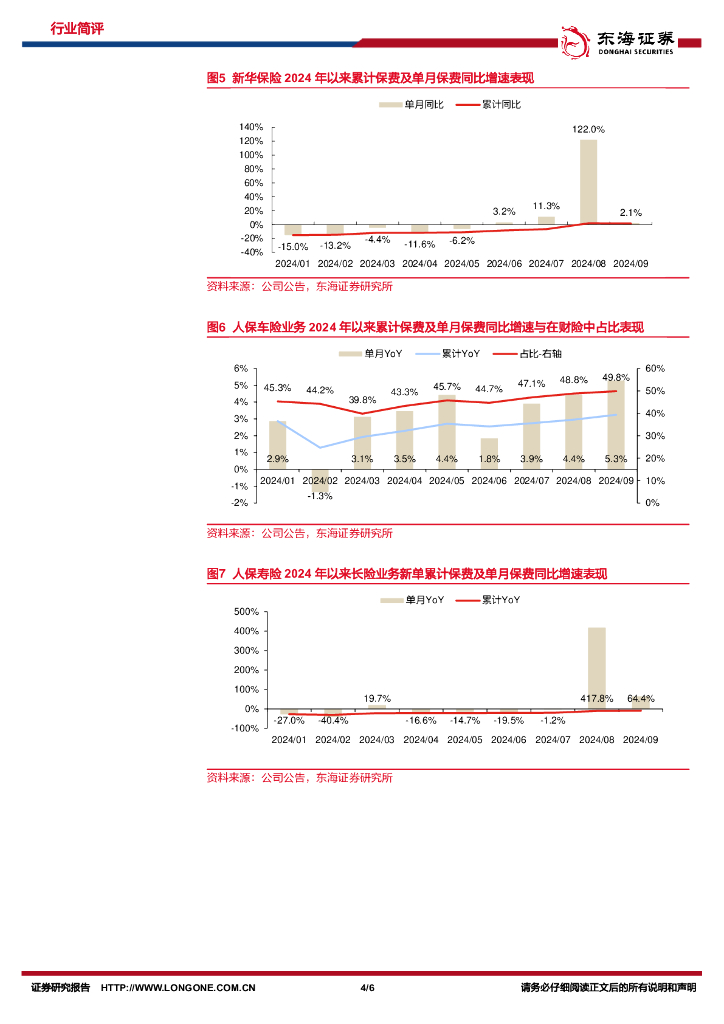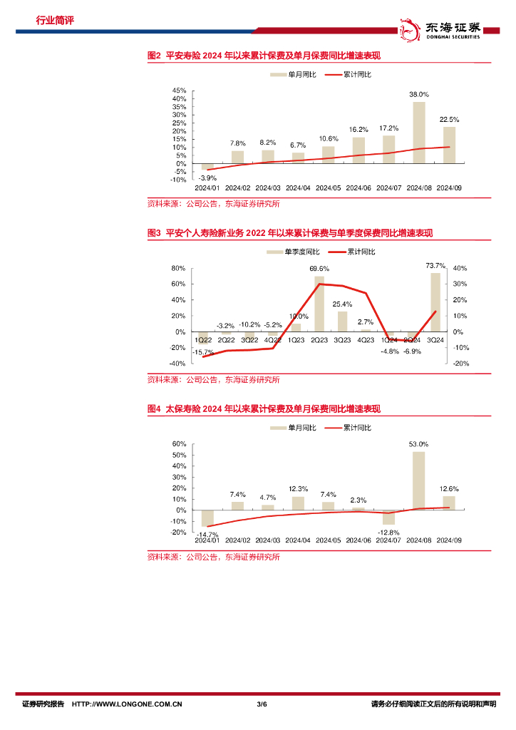 东海证券:上市险企2024年9月保费点评:9月产寿险增速环比回落,关注新定价产品全面上线后的价值提升.pdf