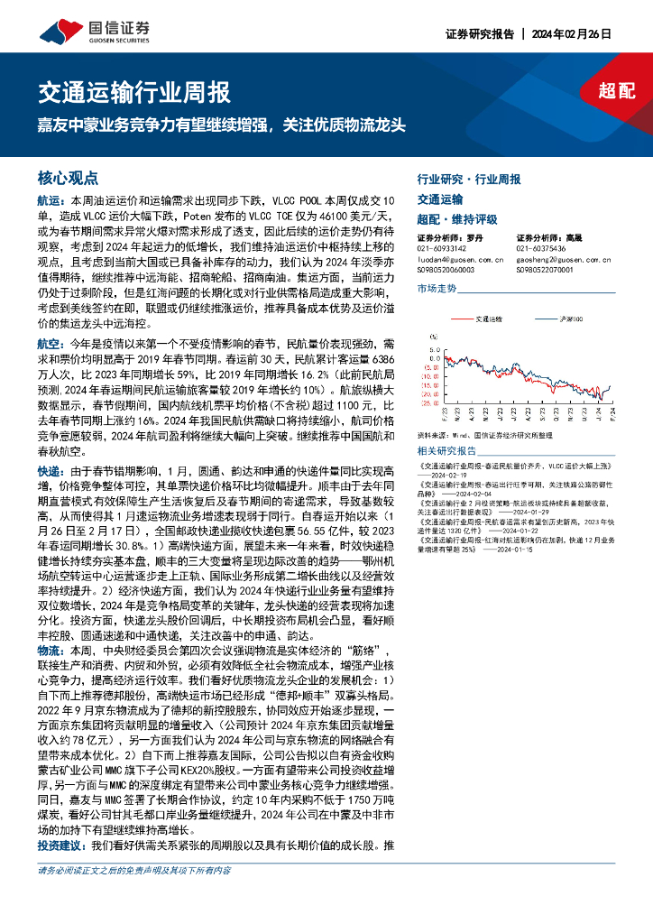 国信证券:交通运输行业周报:嘉友中蒙业务竞争力有望继续增强,关注优质物流龙头.pdf