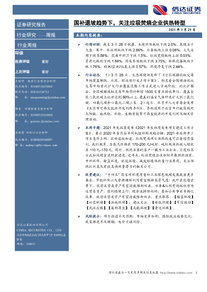 信达证券:国补退坡趋势下,关注垃圾焚烧企业供热转型环保周报.pdf