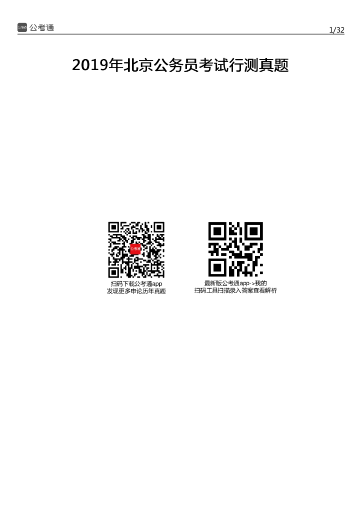 2019年北京公务员考试行测真题及答案.pdf