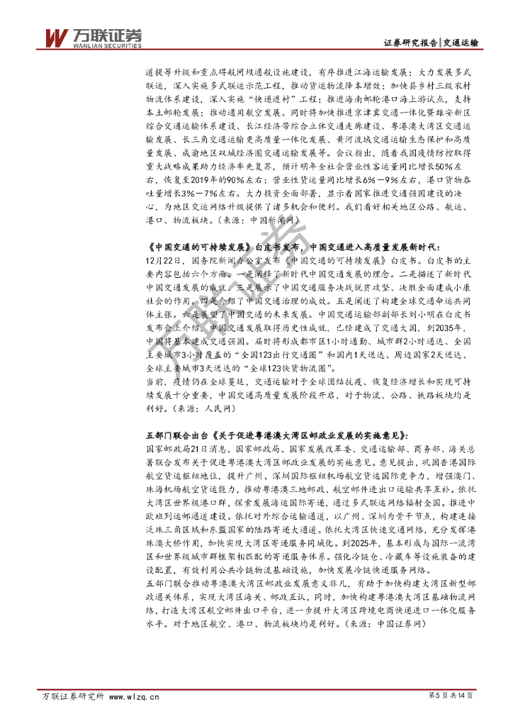 万联证券:交通运输行业周观点报告:全国交运工作会,显示交通强国决心.pdf