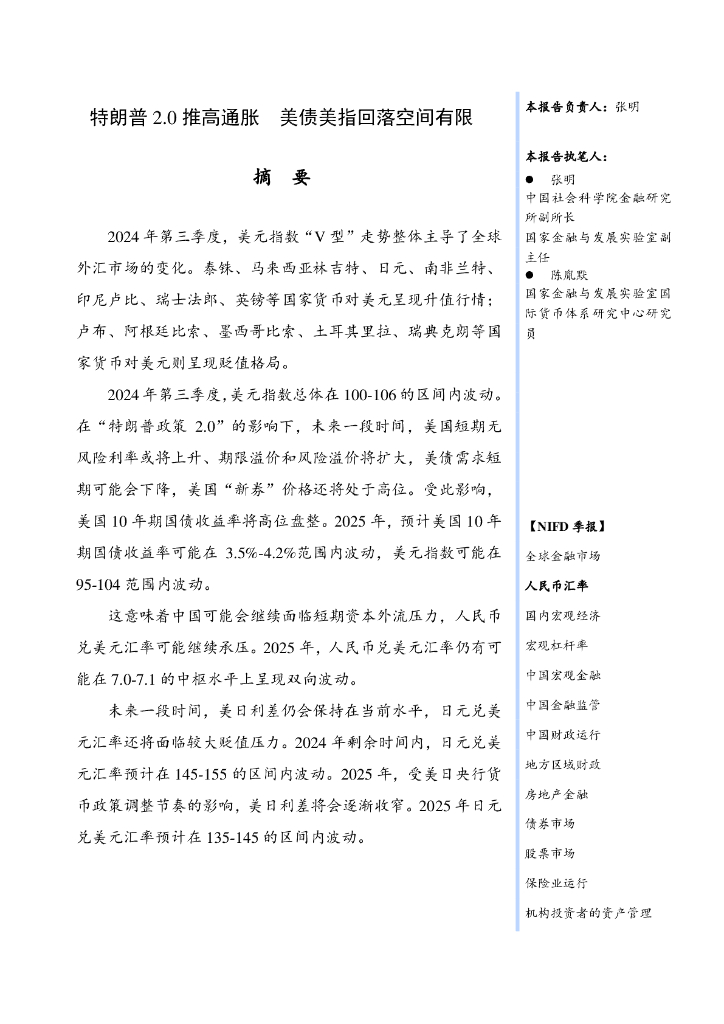 NIFD季报:特朗普2.0推高通胀 美债美指回落空间有限——2024年人民币汇率三季度报告.pdf