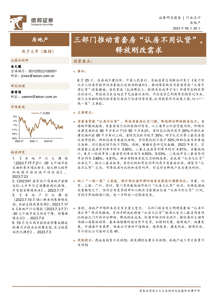 德邦证券:房地产:三部门推动首套房“认房不用认贷”,释放刚改需求.pdf
