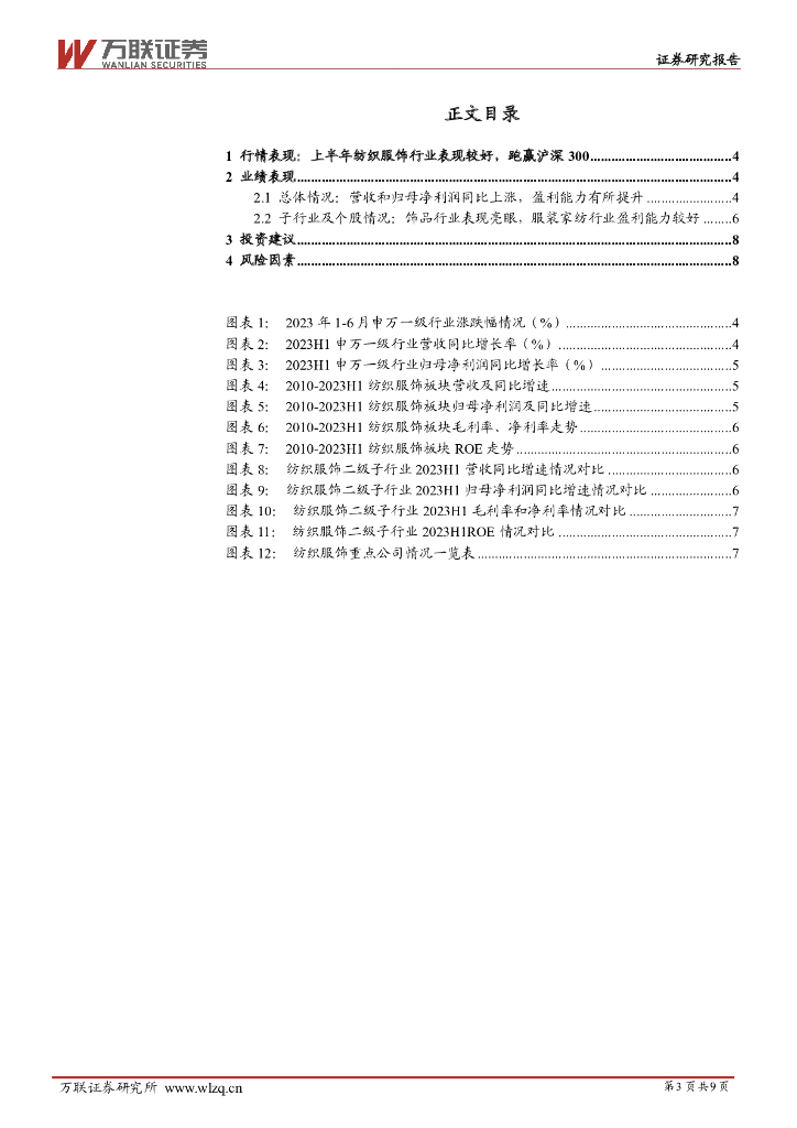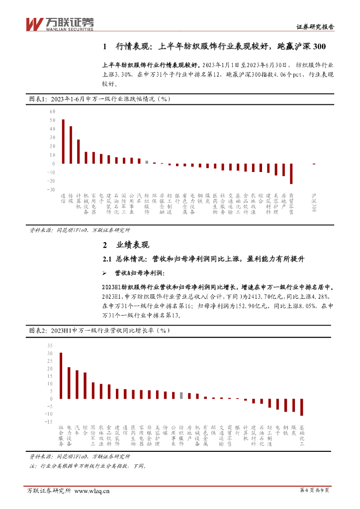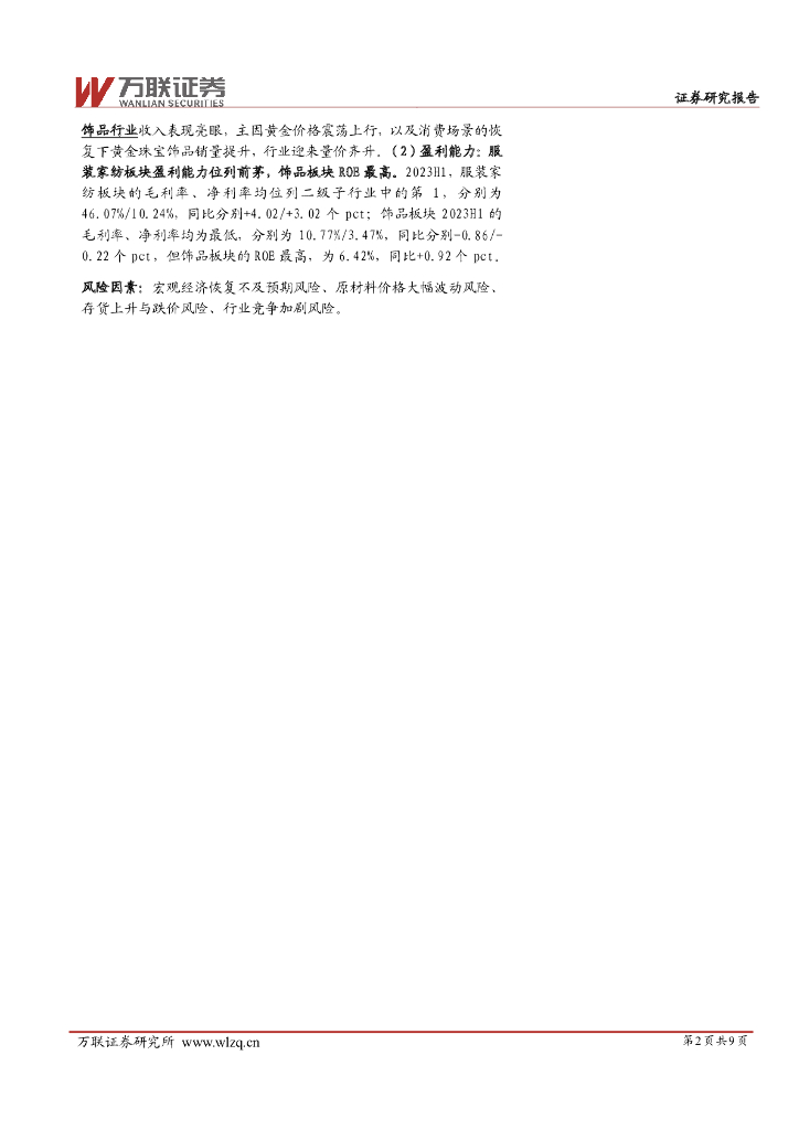 万联证券:纺织服饰2023年中报业绩综述:饰品行业表现较好,纺织制造业绩承压.pdf