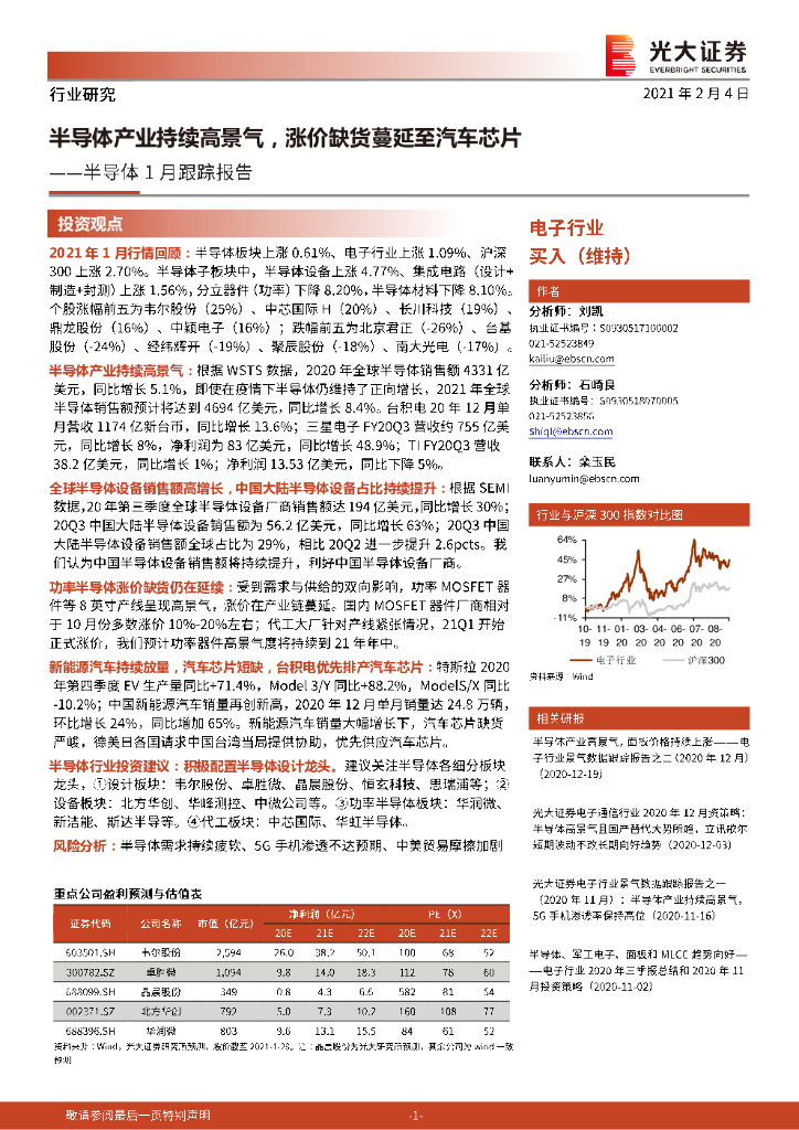 光大证券:半导体1月跟踪报告:半导体产业持续高景气,涨价缺货蔓延至汽车芯片.pdf