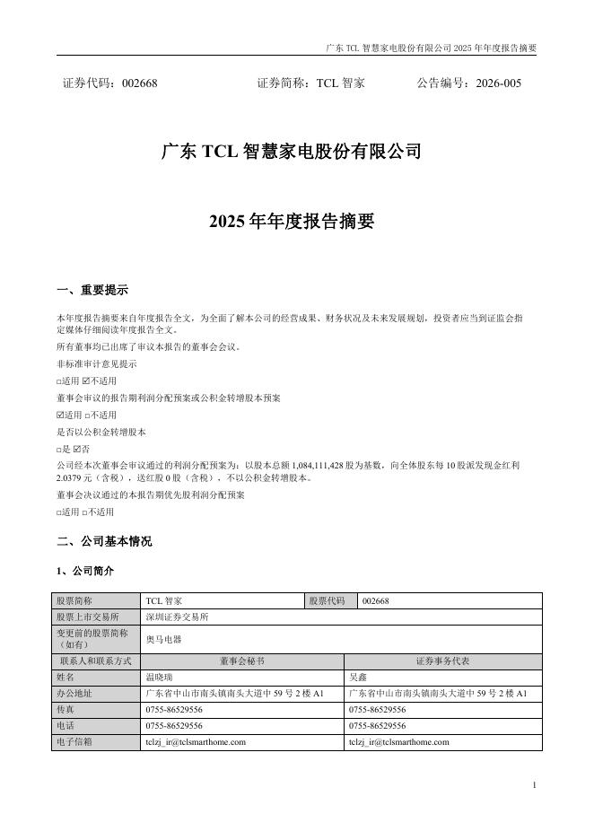 002668-TCL智家:2025年年度报告摘要.pdf