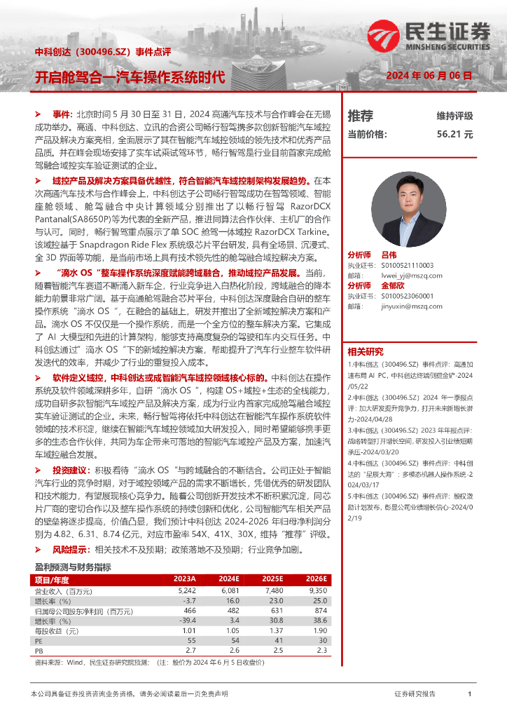 民生证券:中科创达(300496)-事件点评:开启舱驾合一汽车操作系统时代.pdf