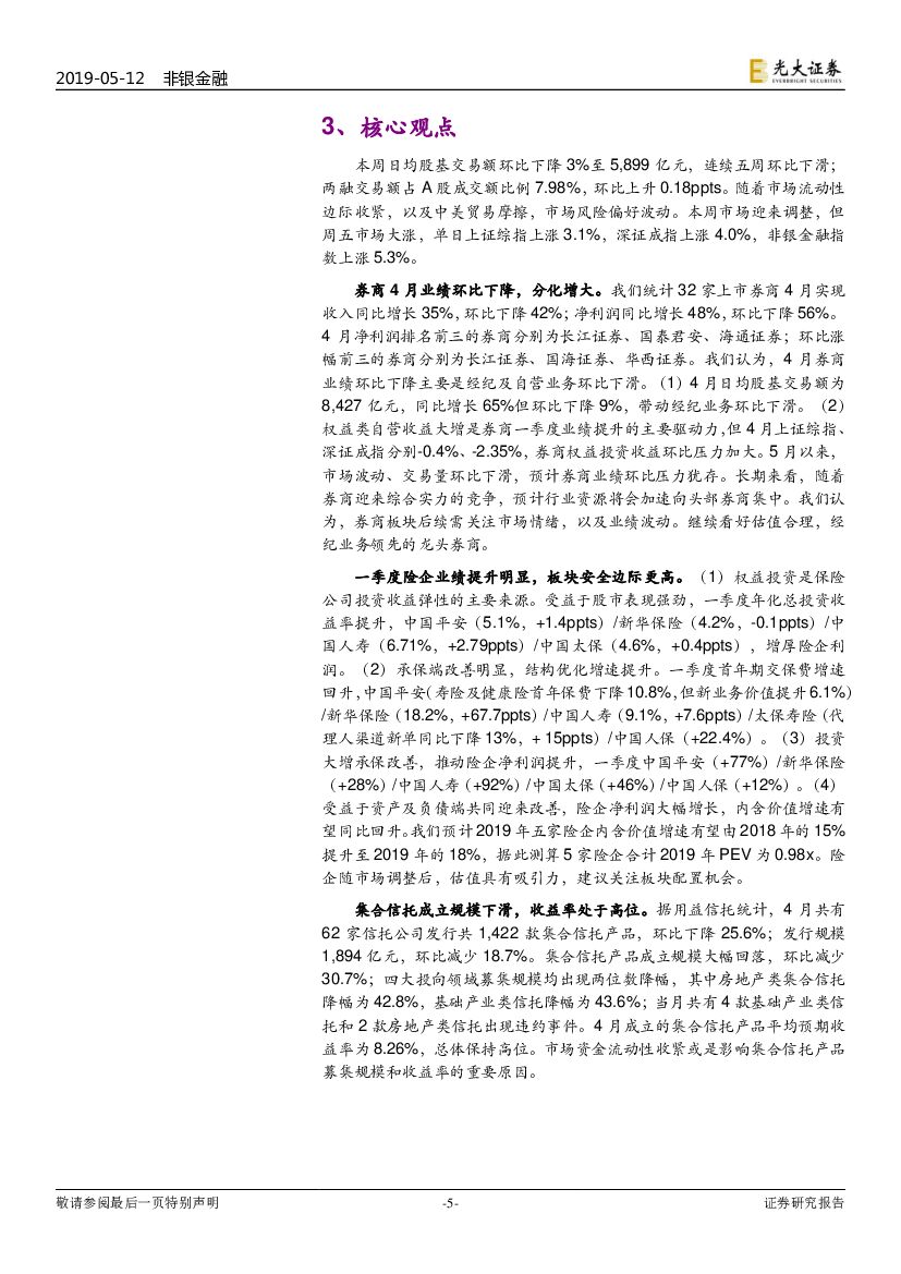 光大证券:非银金融行业周报:券商业绩环比下滑,保险安全边际更高.pdf
