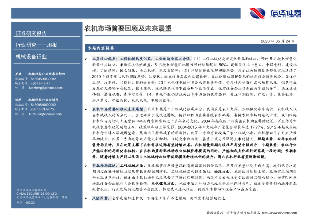 信达证券:机械设备行业周报:农机市场简要回顾及未来展望.pdf