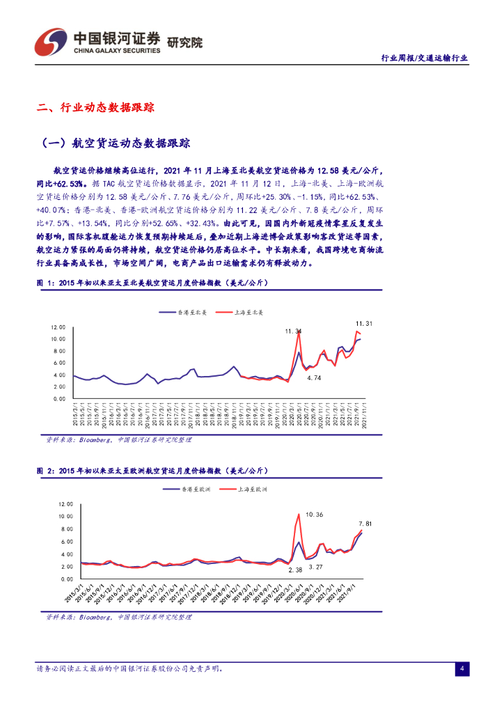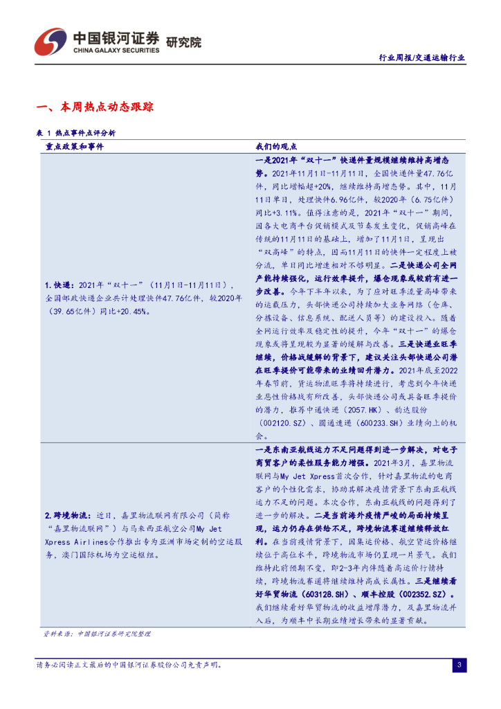 中国银河:交通运输行业周报:“双十一”快递件量增速超20%,航空货运价格处于阶段性高位.pdf