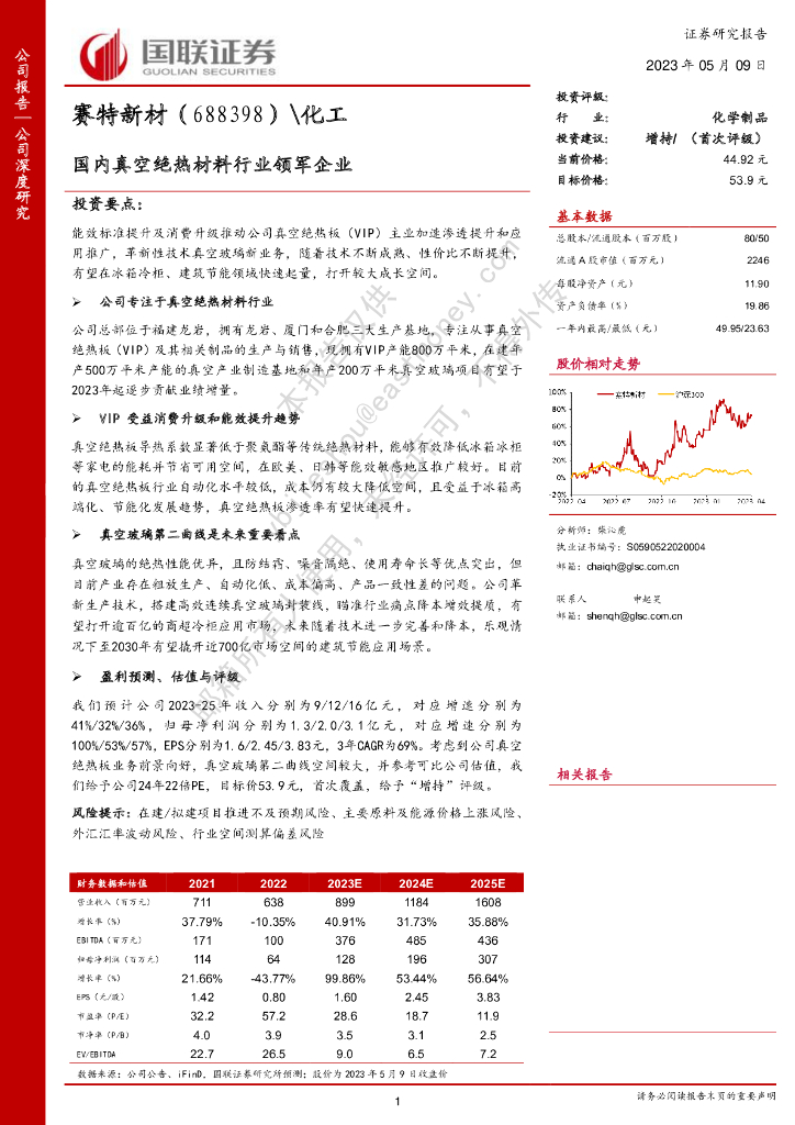 国联证券:赛特新材(688398)-国内真空绝热材料行业领军企业.pdf
