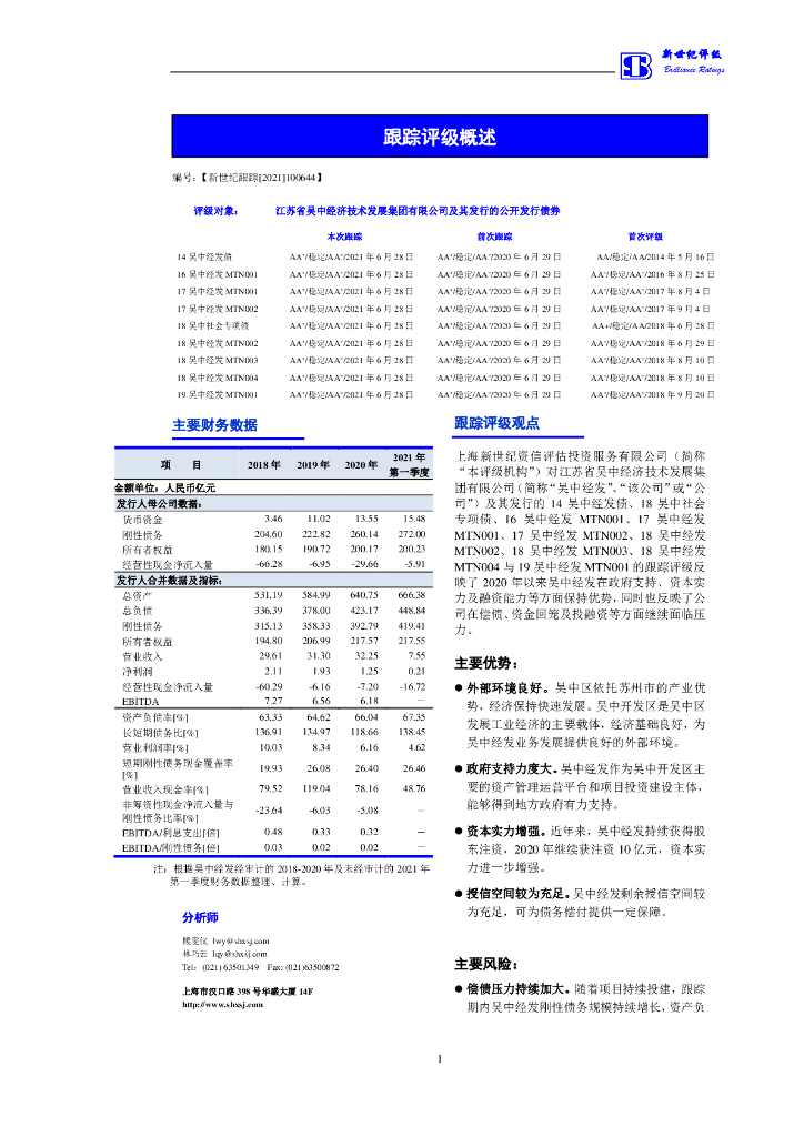 新世纪:江苏省吴中经济技术发展集团有限公司主体信用评级报告及跟踪评级安排.pdf