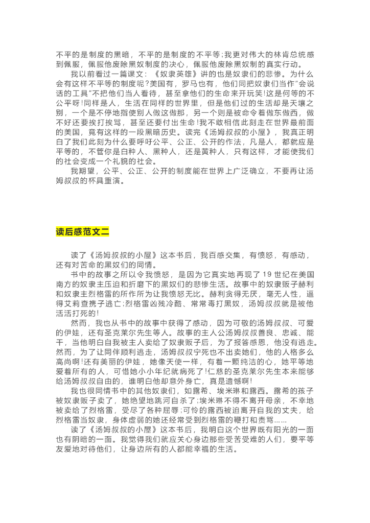 39《汤姆大叔的小屋》精彩片段+读后感.doc