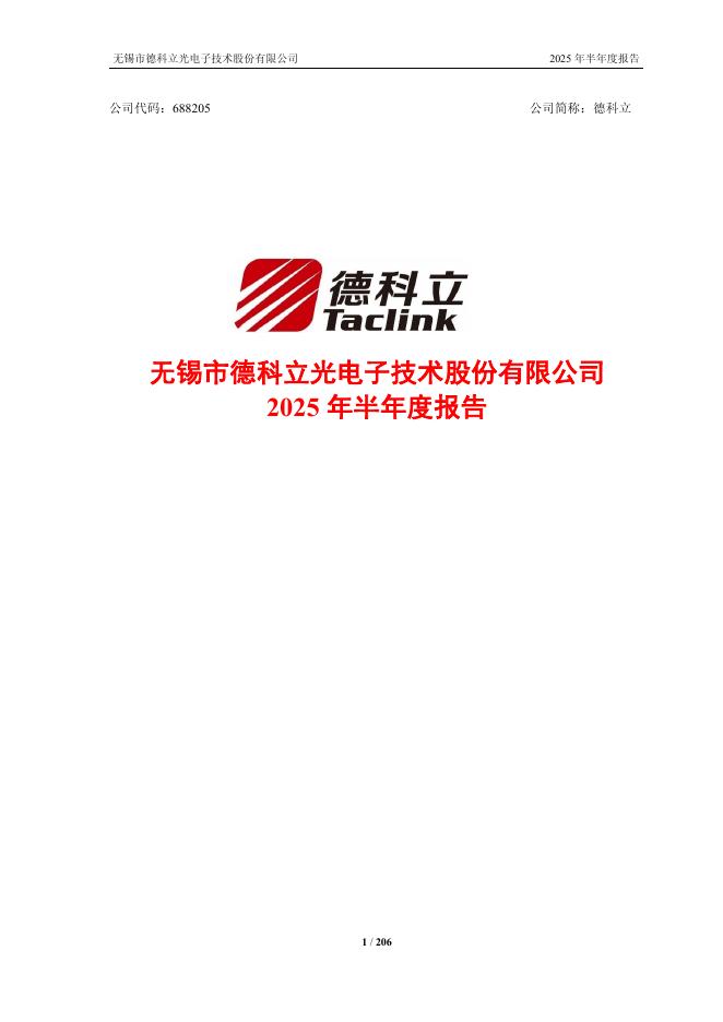688205-德科立:无锡市德科立光电子技术股份有限公司2025年半年度报告.pdf