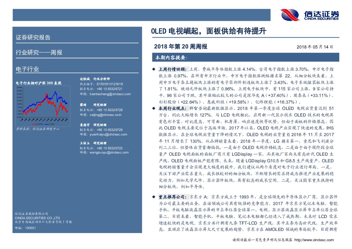 信达证券:电子行业2018年第20周周报周报:OLED电视崛起,面板供给有待提升.pdf