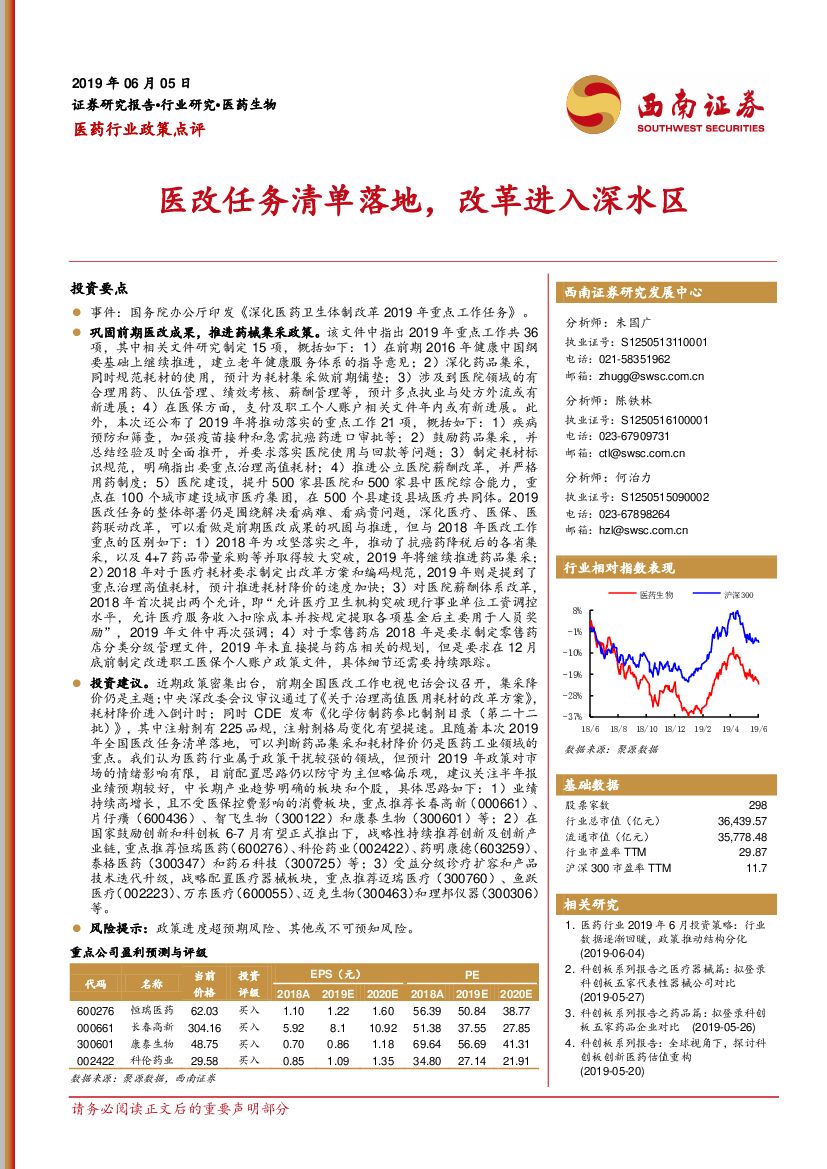 西南证券:医药行业政策点评:医改任务清单落地,改革进入深水区.pdf