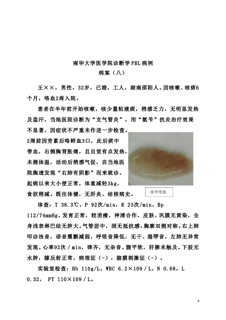 《临床技能学》教学案例-临床思维运用(选修)3—呼吸系统疾病PBL教学病例1.pdf