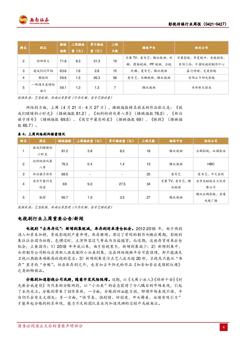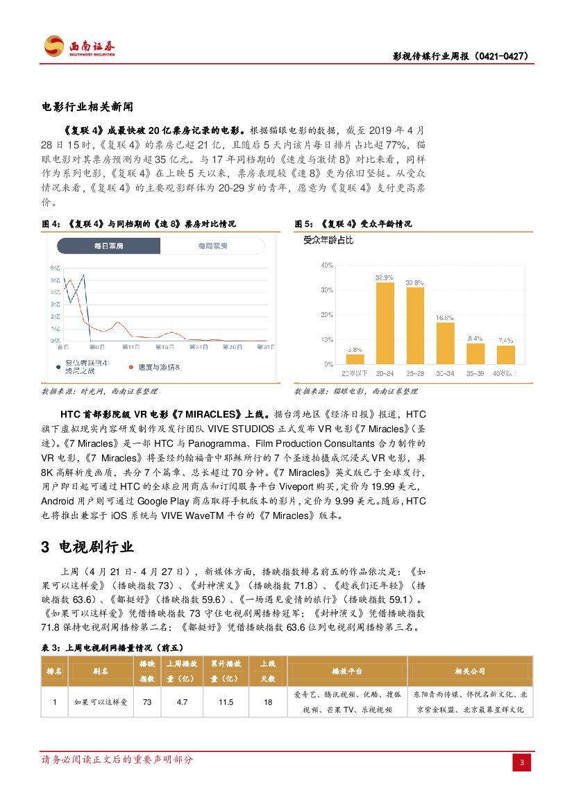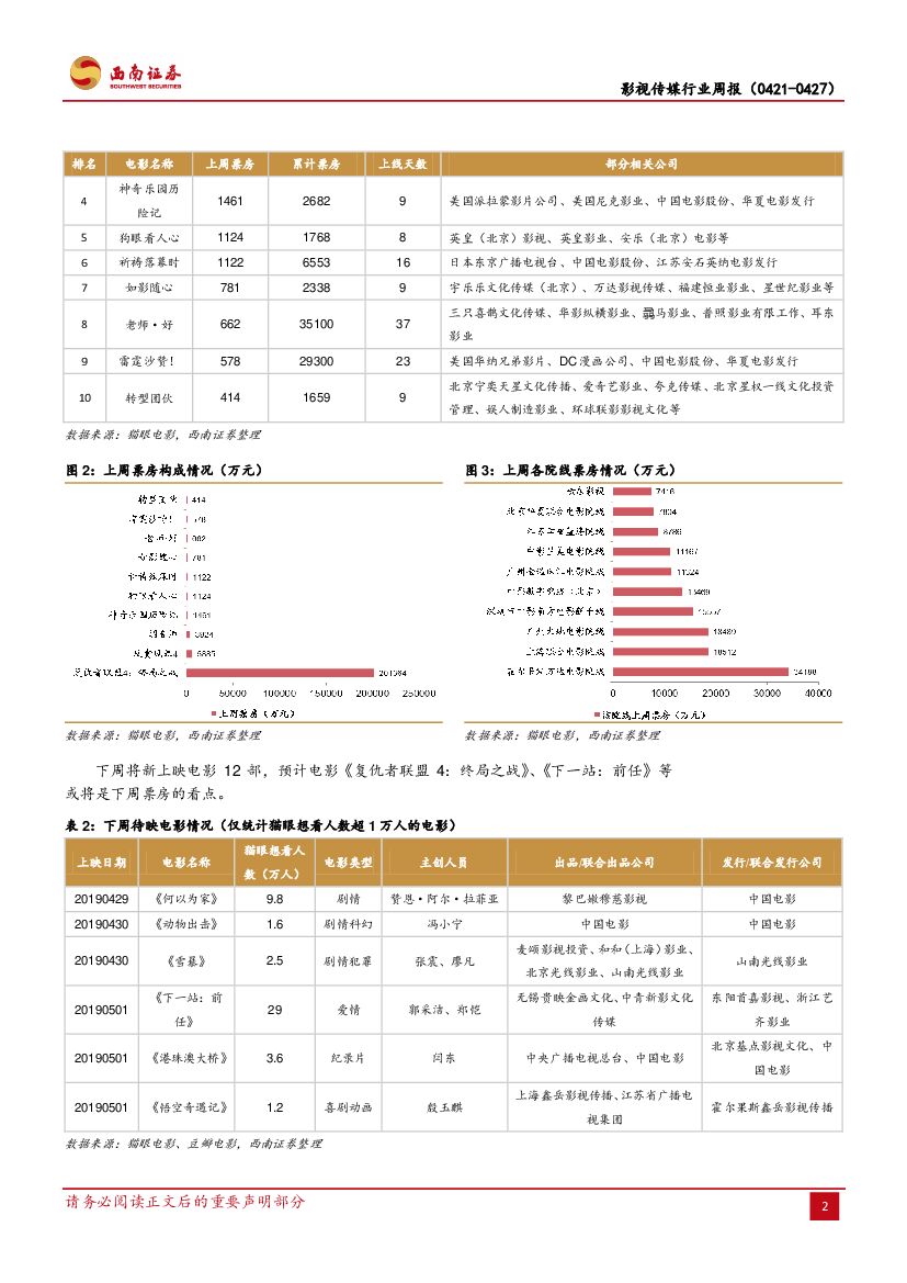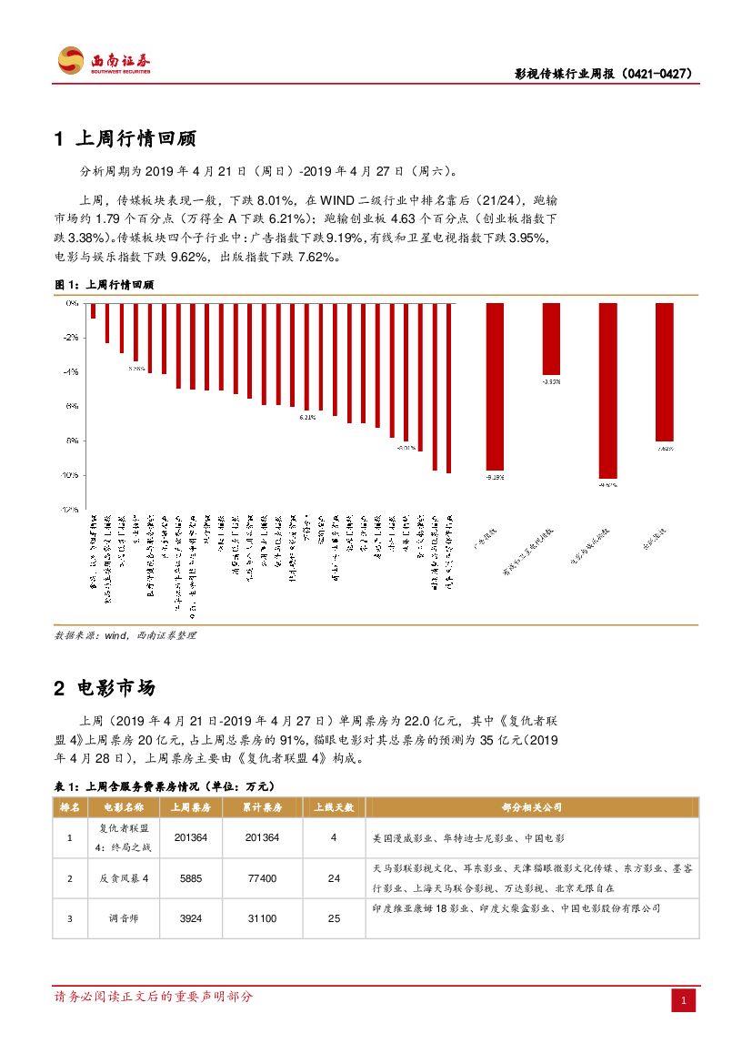 西南证券:影视传媒行业周报:《复联4》票房超20亿,电视剧去库存化.pdf