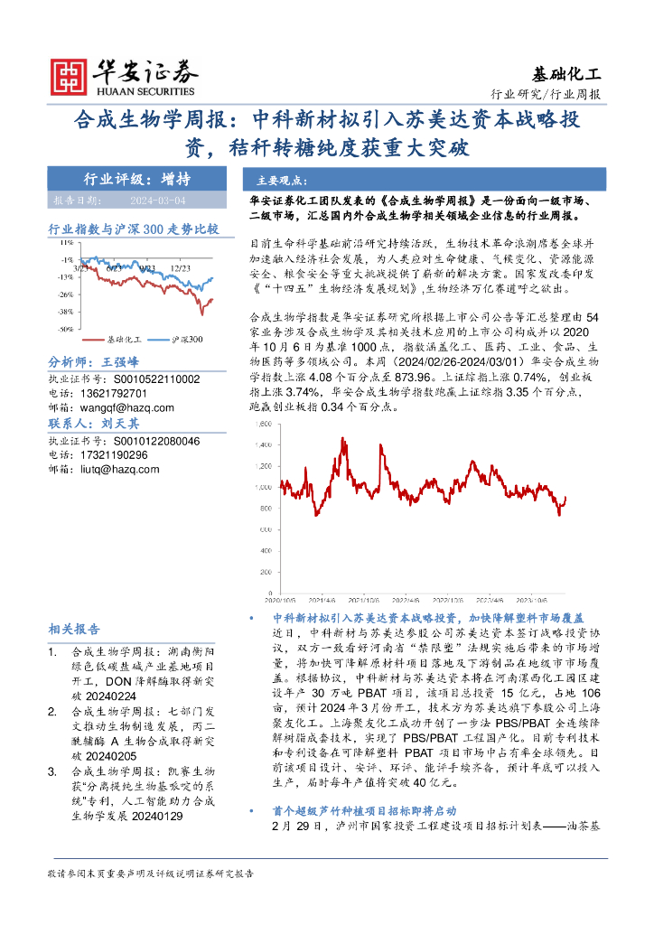 华安证券:行业研究/行业周报:合成生物学周报:中科新材拟引入苏美达资本战略投资,秸秆转糖纯度获重大突破.pdf