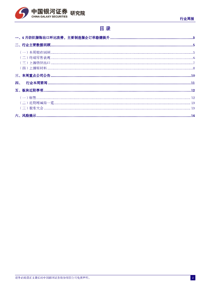 中国银河:纺织服饰行业周报:4月纺织服饰出口环比改善,主要制造服企订单稳健提升.pdf