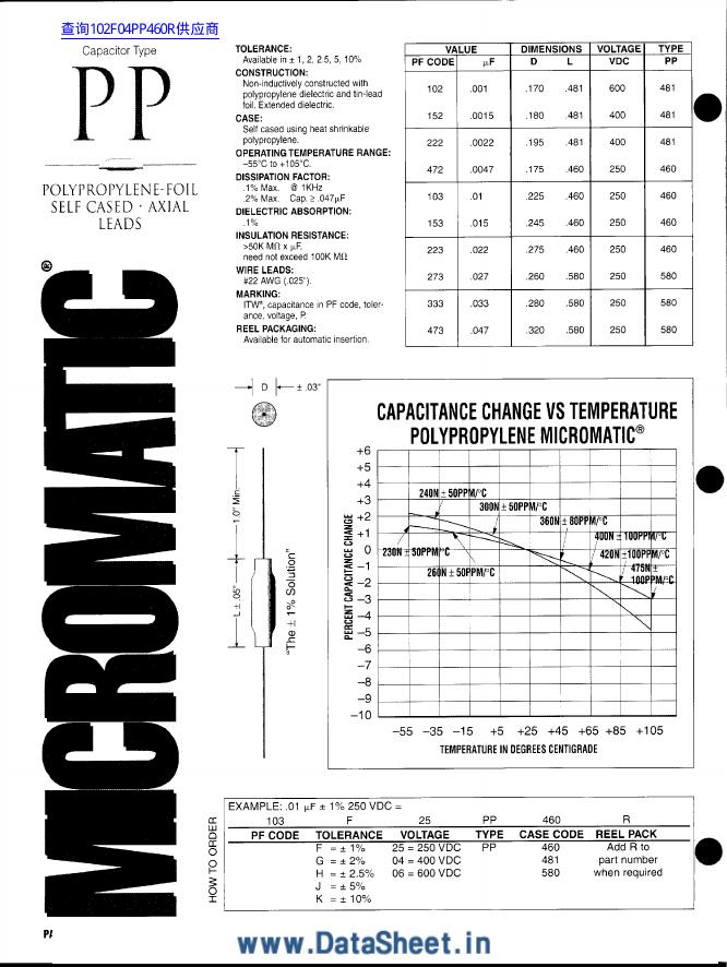 MCROMATIC capacitor type PP POLYPROPYLENE FOIL SELF CASED AXIAL LEADS 数据手册.pdf