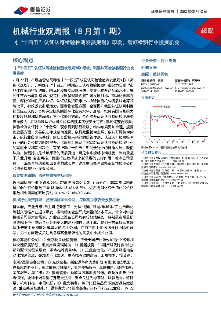 国信证券:机械行业双周报(8月第1期):《“十四五”认证认可检验检测发展规划》印发,看好检测行业投资机会.pdf
