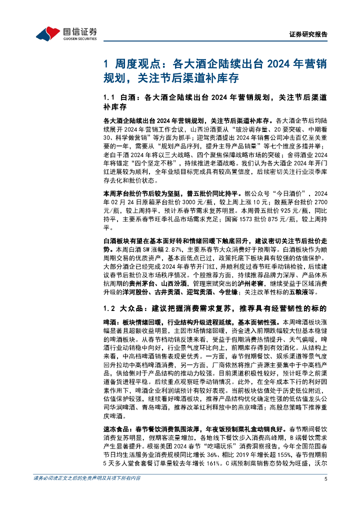 国信证券:食品饮料周报(24年第7周):各大酒企陆续出台2024年营销规划,关注节后渠道补库存.pdf