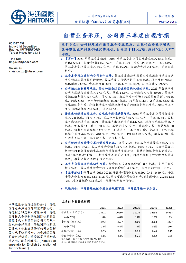 海通国际:兴业证券(601377)-公司季报点评:自营业务承压,公司第三季度出现亏损.pdf