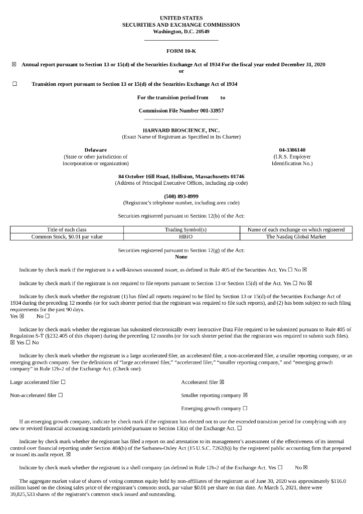Harvard Bioscience Inc.(HBIO)2020财年年度报告(英文版).pdf