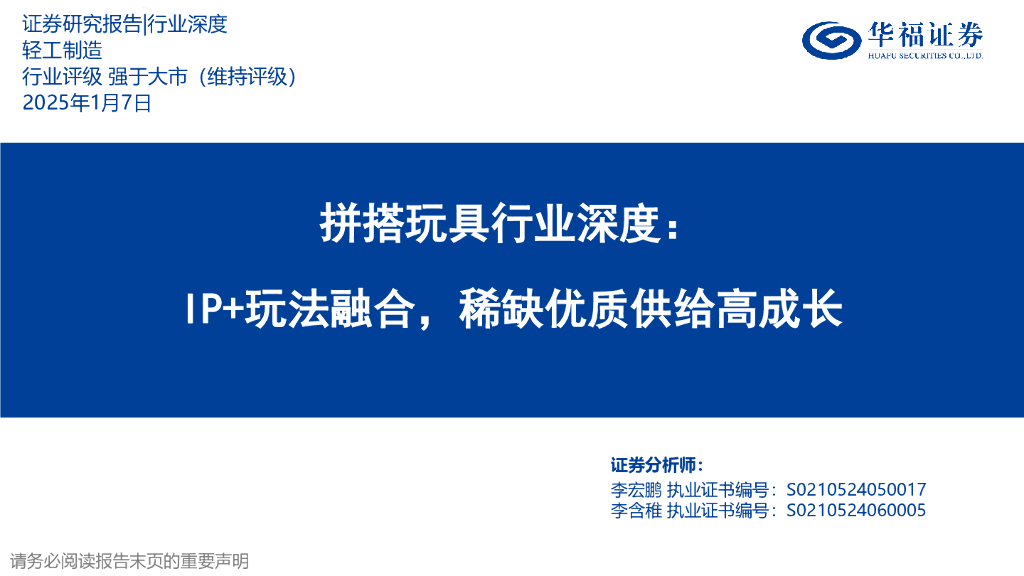 华福证券:拼搭玩具行业深度:IP+玩法融合,稀缺优质供给高成长.pdf