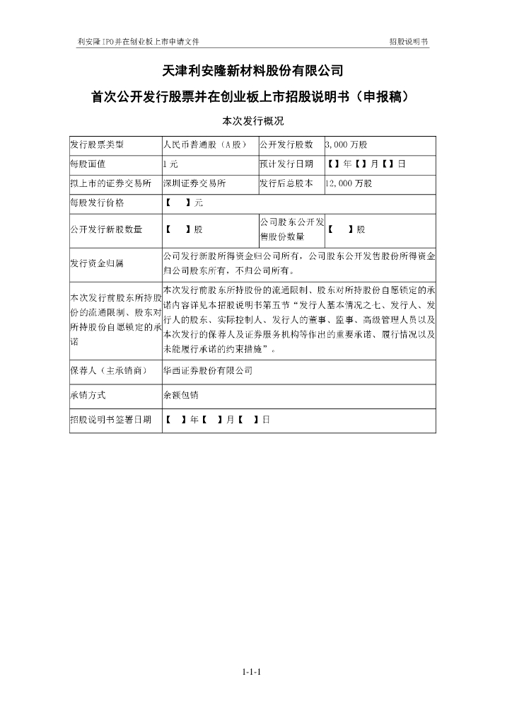 天津利安隆新材料股份有限公司深交所创业板IPO上市招股说明书.pdf