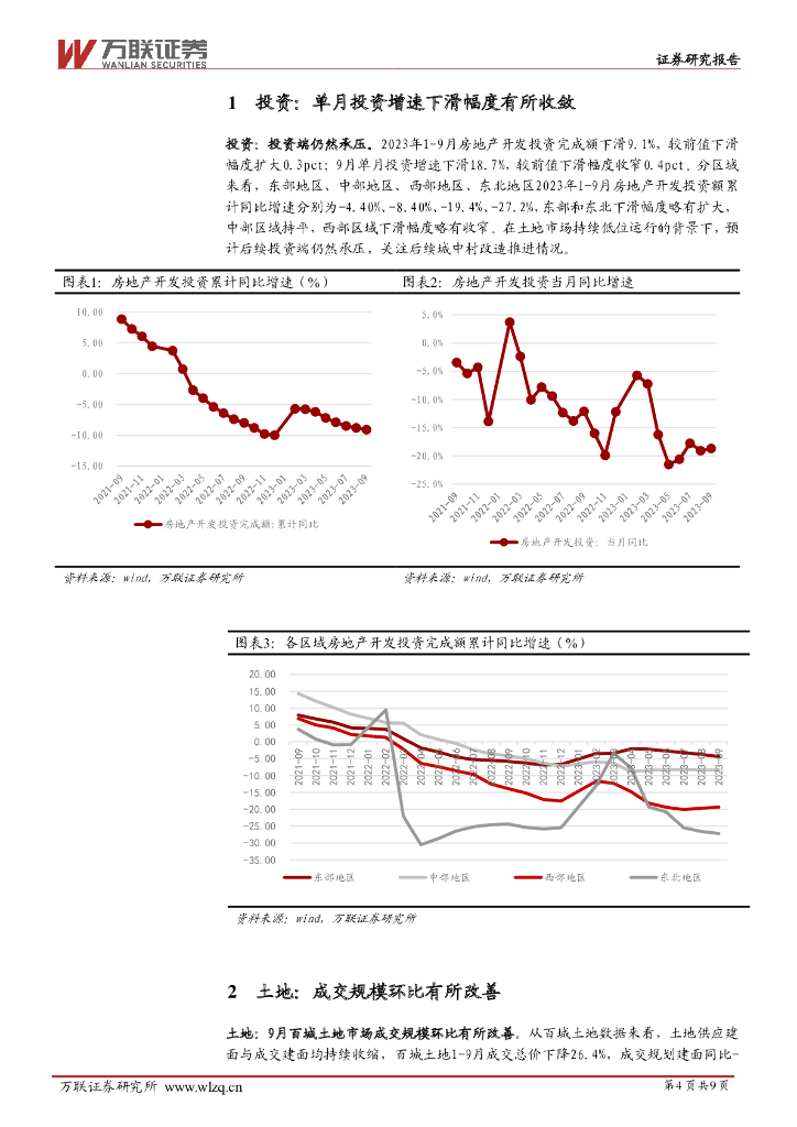 万联证券:房地产行业跟踪报告:9月销售降幅收窄,投资端仍较弱.pdf