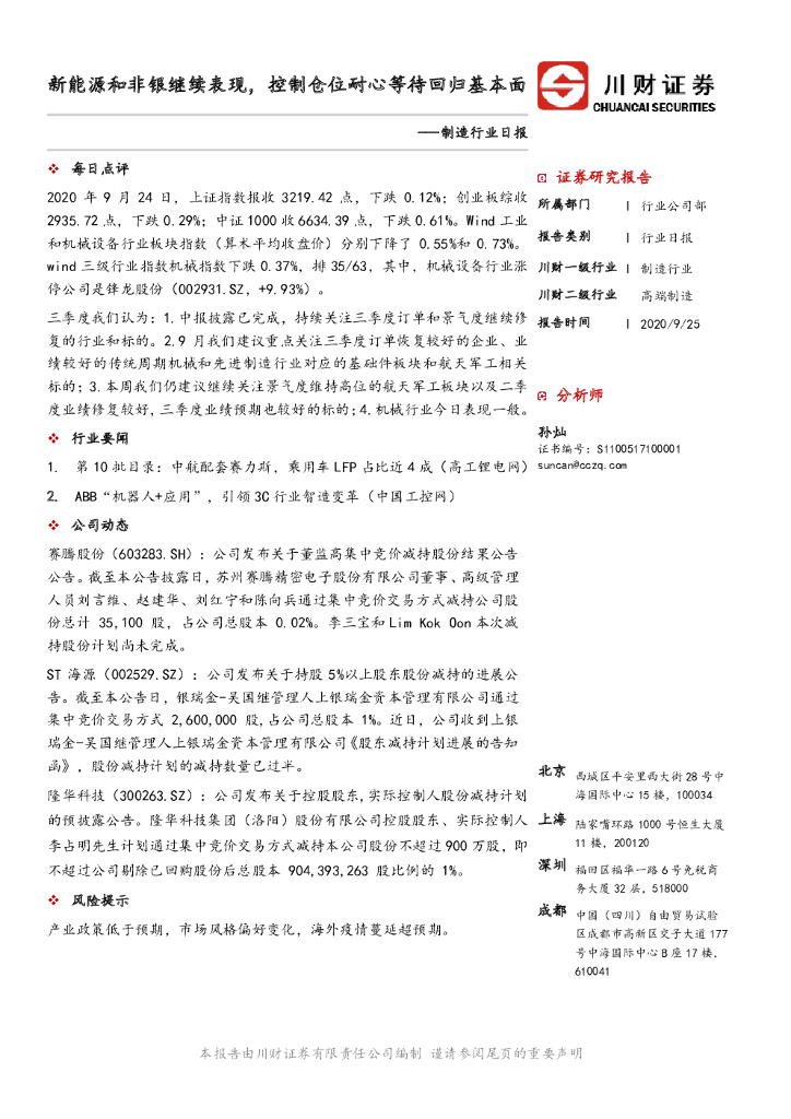 川财证券:制造行业日报:新能源和非银继续表现,控制仓位耐心等待回归基本面.pdf