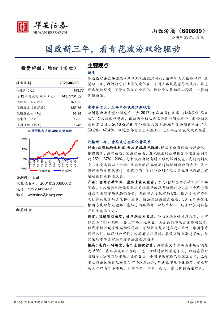 华安证券:山西汾酒(600809)-国改新三年,看青花玻汾双轮驱动.pdf