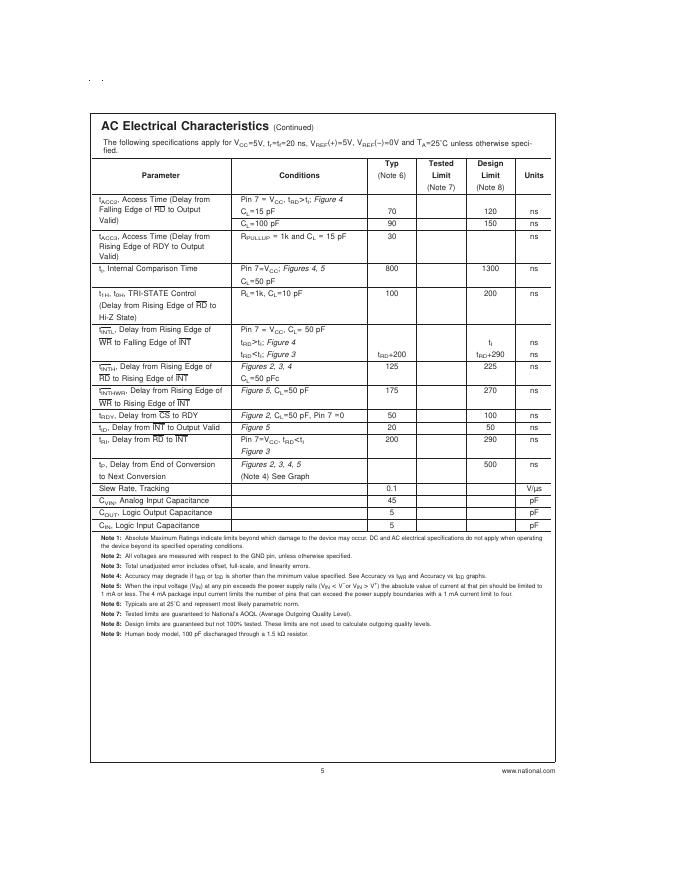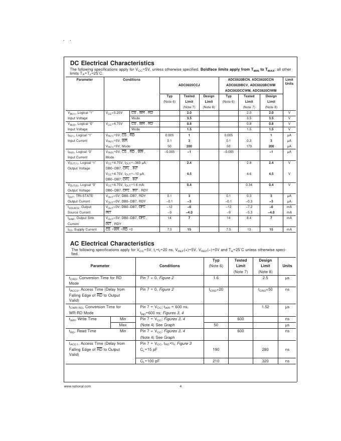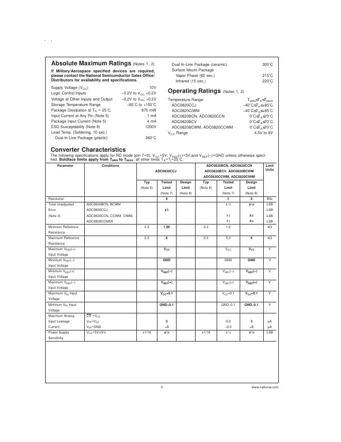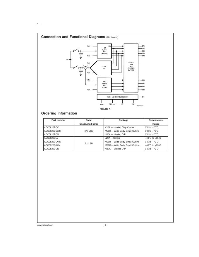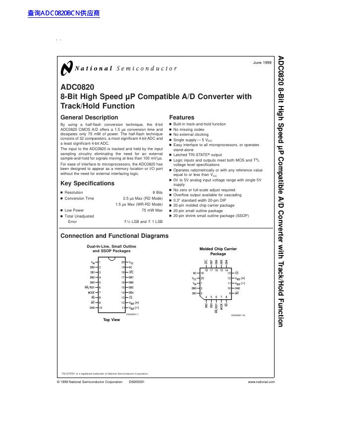 national semiconductor ADC0820 8-Bit High Speed µP Compatible A/D Converter with Track/Hold Function 数据手册.pdf