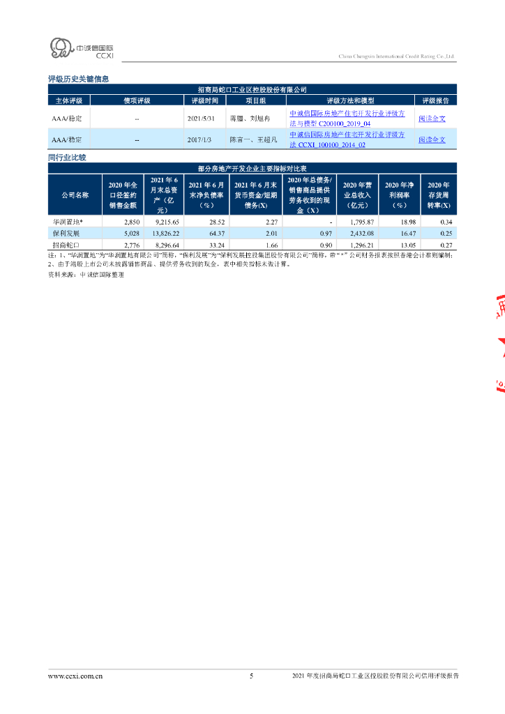 中诚信:2021年度招商局蛇口工业区控股股份有限公司信用评级报告.pdf