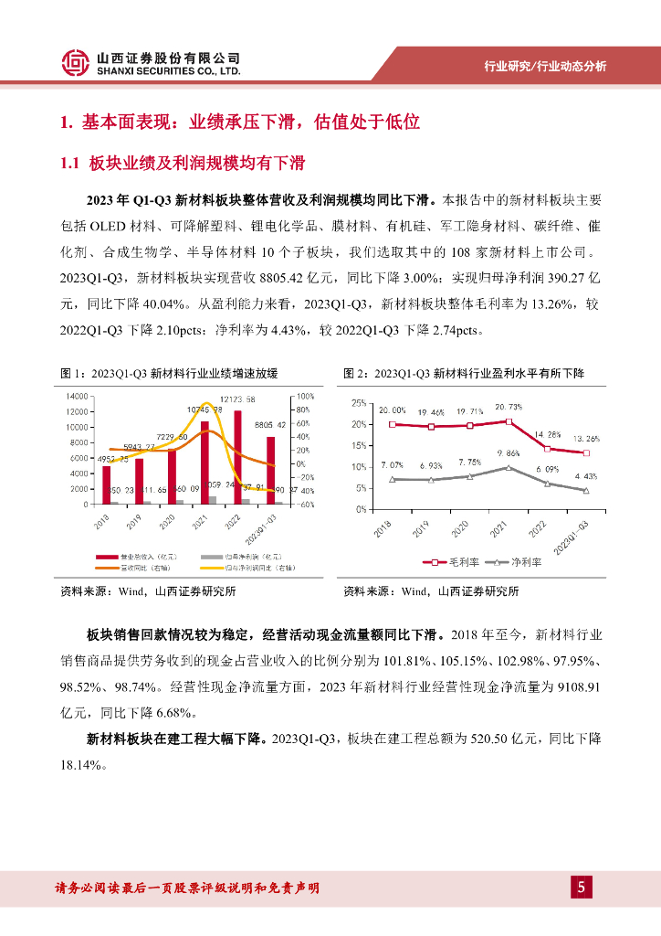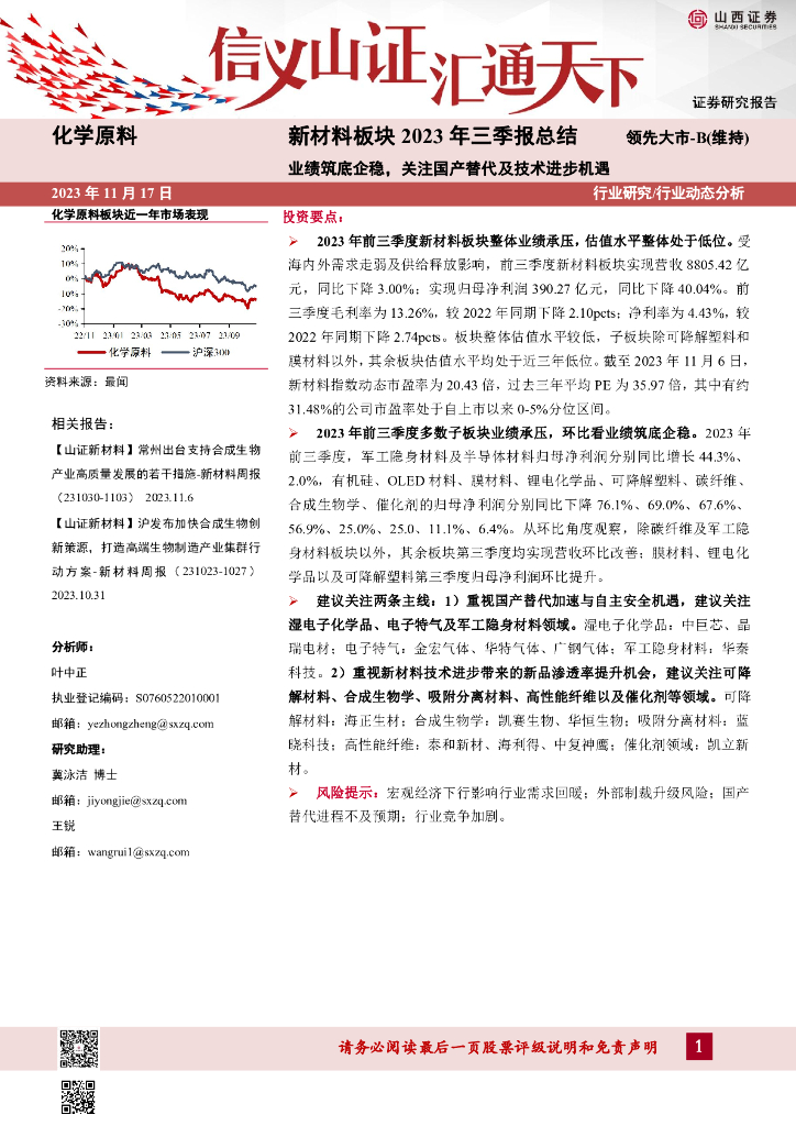 山西证券:新材料板块2023年三季报总结:业绩筑底企稳,关注国产替代及技术进步机遇.pdf