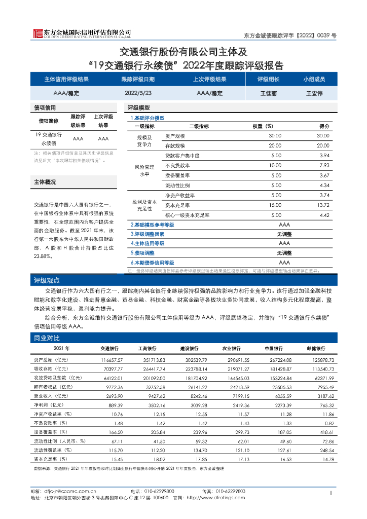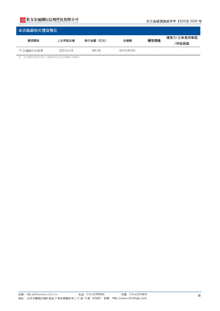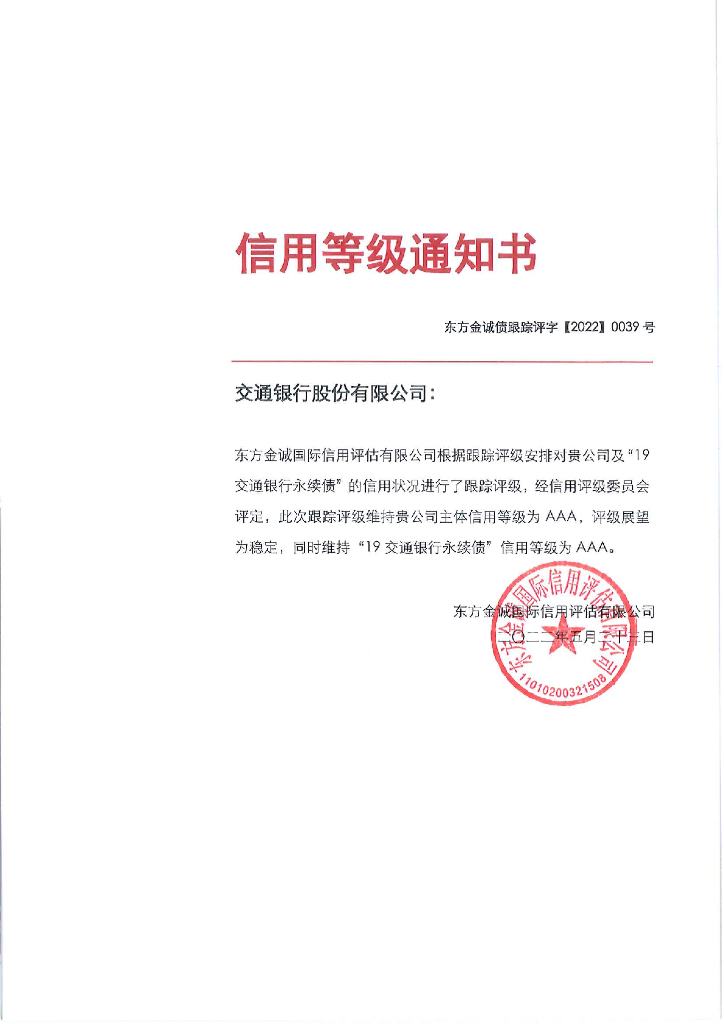 东方金诚:交通银行股份有限公司主体及“19交通银行永续债”2022年度跟踪评级报告.pdf