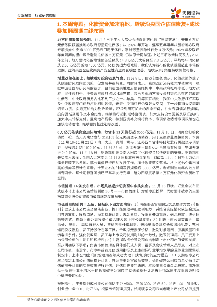 天风证券:建筑装饰行业研究周报:化债资金加速落地,继续沿央国企估值修复+成长叠加顺周期主线布局.pdf